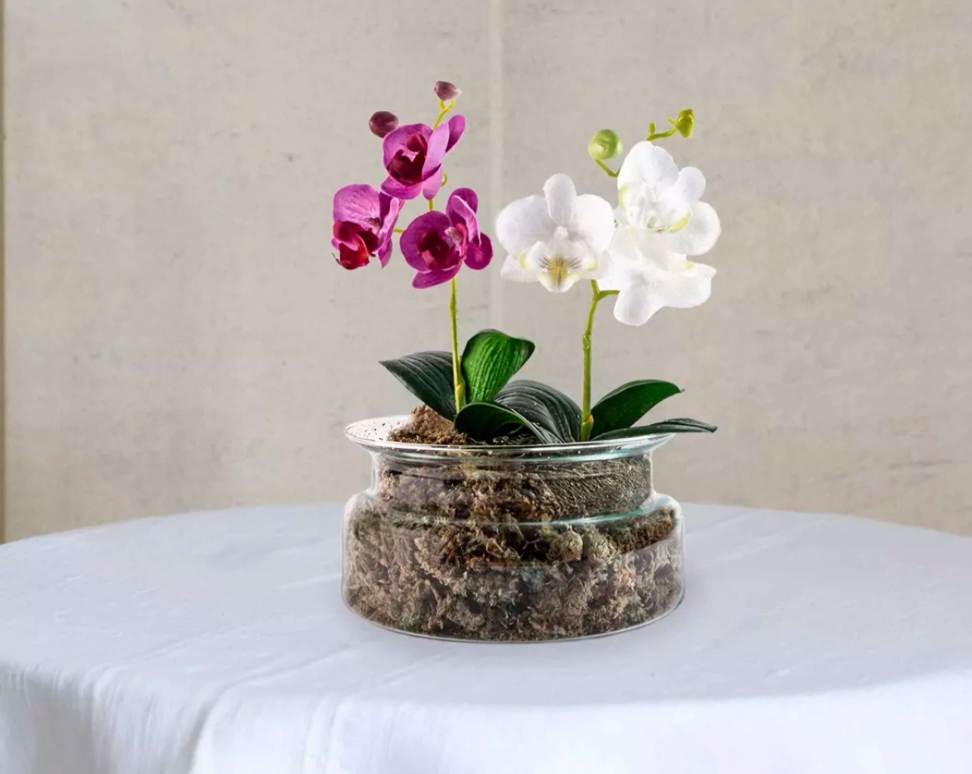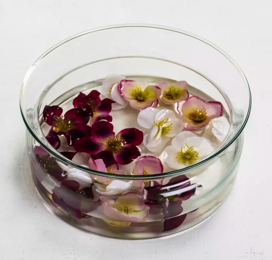 The Botanical Glass Planter, featuring a generous size and unique shape, doubles as a magnificent floating bowl and a flexible base for vibrant floral displays.